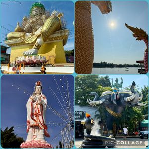日本では冬の始まり11月末ですが、バンコクは乾期ですが、晴天が、続きそして日中は、30度越えでした。エアコンが効いて快適な車移動、冷えたお水をサービスしてもらいました。バンコク名物?渋滞も観光と思えば、車の間をすり抜けて3人乗り?❗のバイクもハラハラして、感動ものでした。参加した組も、私たちと、中年男性1人(途中離脱したので)結果私たちのプライベートガイドさん状態でした。ワットさん、ありがとうございました、記念撮影も、多才なアングルで、とても良い写真でした。