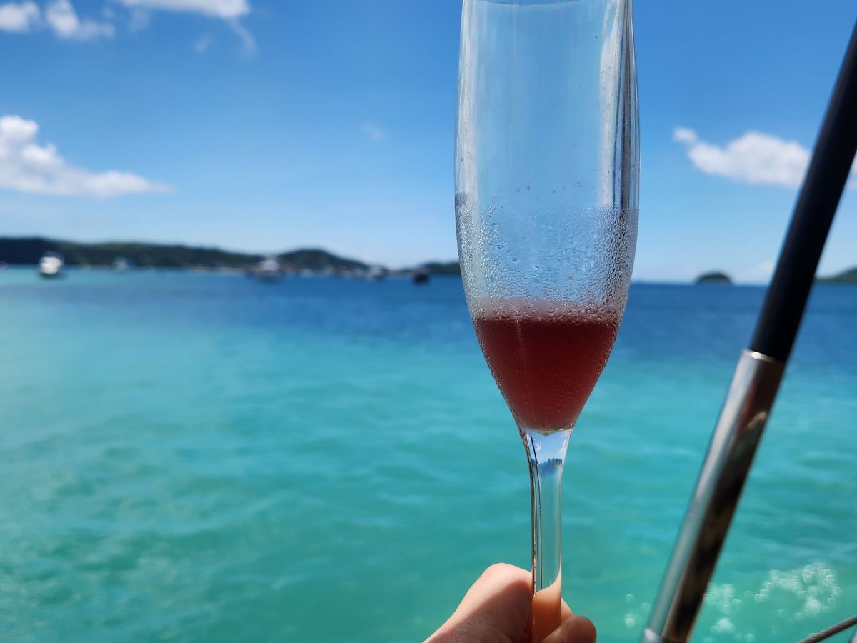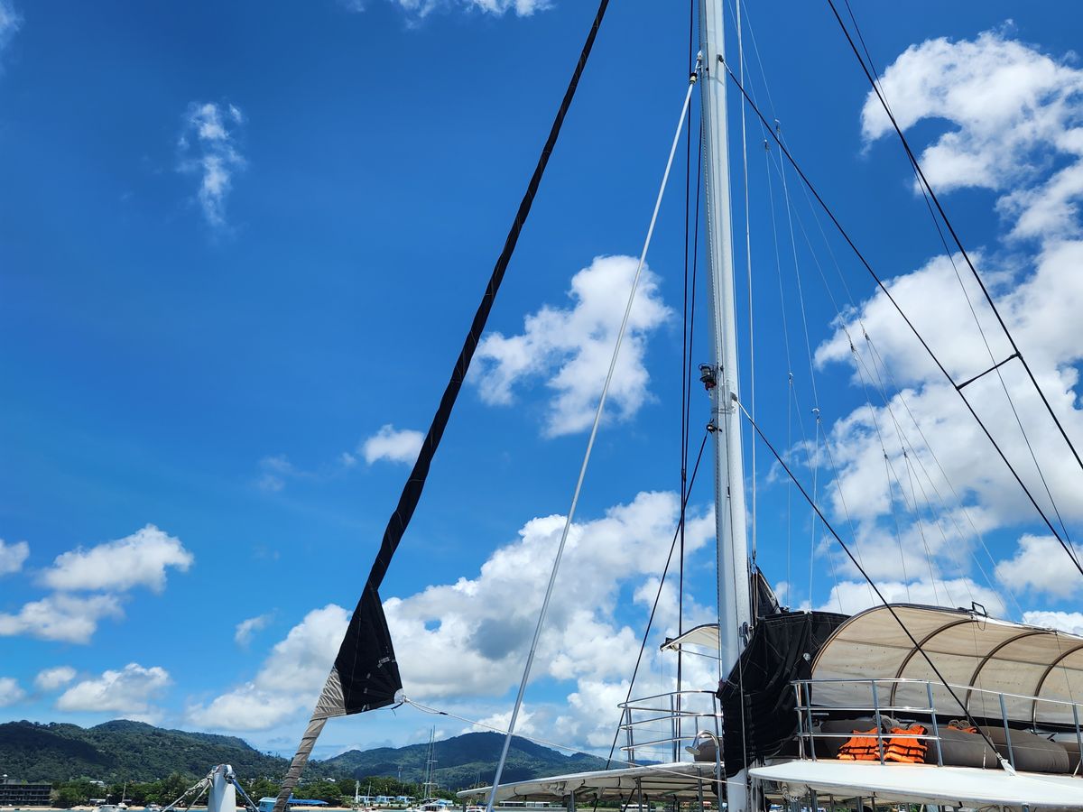 午前中の天気は良かったのですが、2島めの島に向かう時に雨になり、帰りには波も高くなり、ヨットは大揺れで先頭の座席には水が入り、数名が後ろの座席に移動しました。しかも全ての座席に水しぶきがかかり、半数以上の人が船酔いになり、私も人生初の船酔いを経験しました。