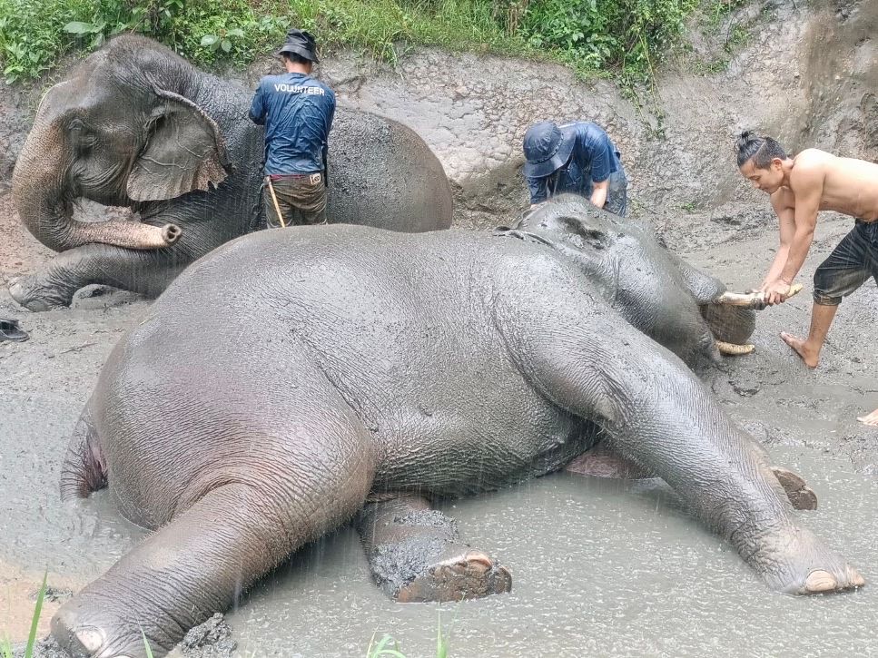 豊かな森を登り、山の頂上を目指します。頂上には象の大好きな泥遊び場が!一緒に泥んこになって楽しめます。更に川では泥を落とすための水浴び開始!マホート達も象もこれでもかと遊んでくれます。全身泥だらけのずぶ濡れでしたが、すっごく楽しい体験になりました。ありがとうございます。