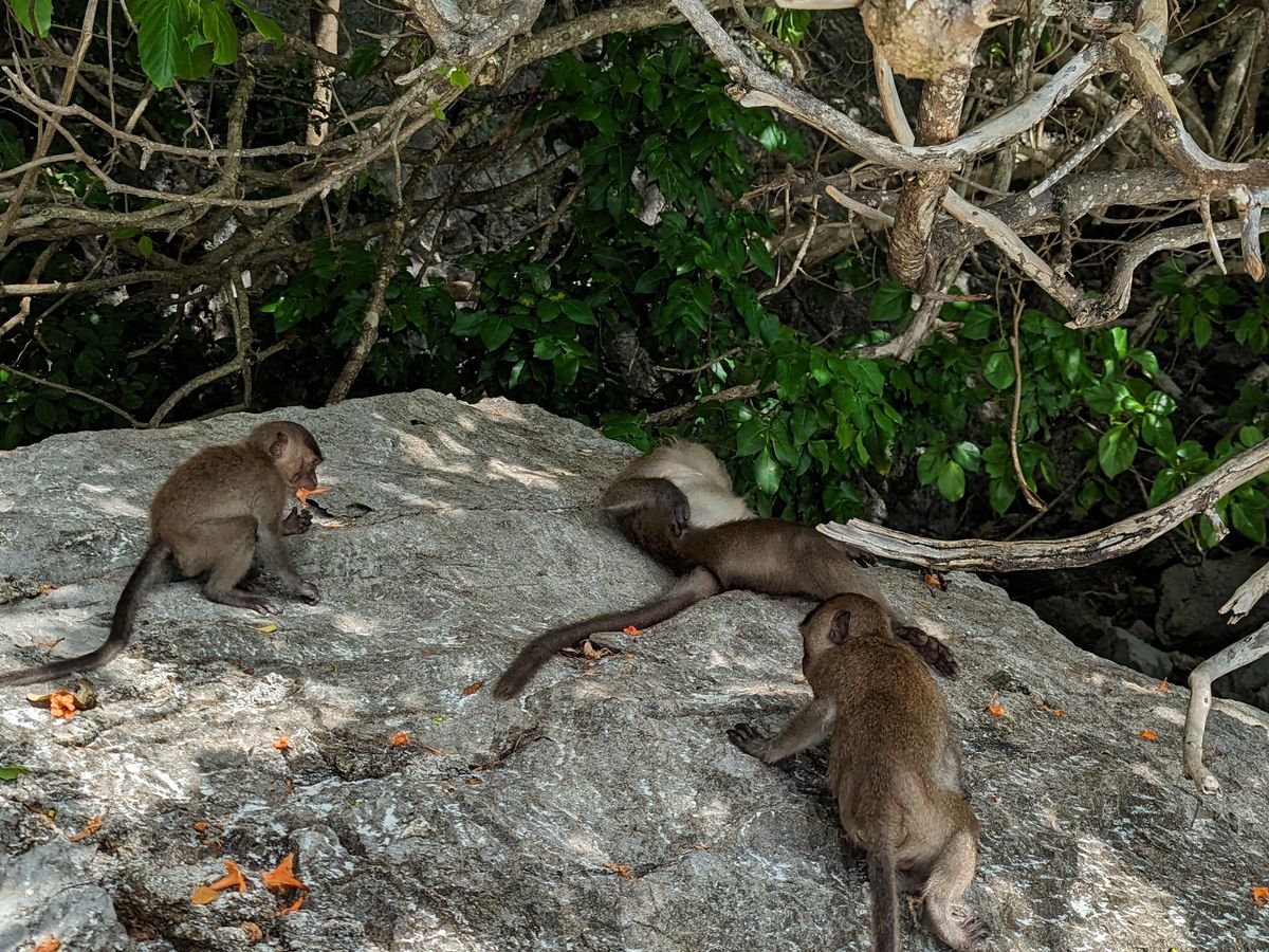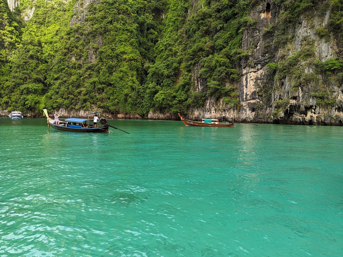 早朝からのツアーでしたが、観光客が少ない時間帯からの三カ所の島めぐりは本当に海がきれいでした。ねこがいるカイ島で朝日を見ながら朝食をとり、ピピ島でマヤベイを散策したり、海の状態があまり思わしくなく、シュノーケリングが大変でしたが、昼食時間はゆっくり過ごせて、バンブー島から戻る午後からは天気が荒れて、帰りのボートはバナナボート状態でした。