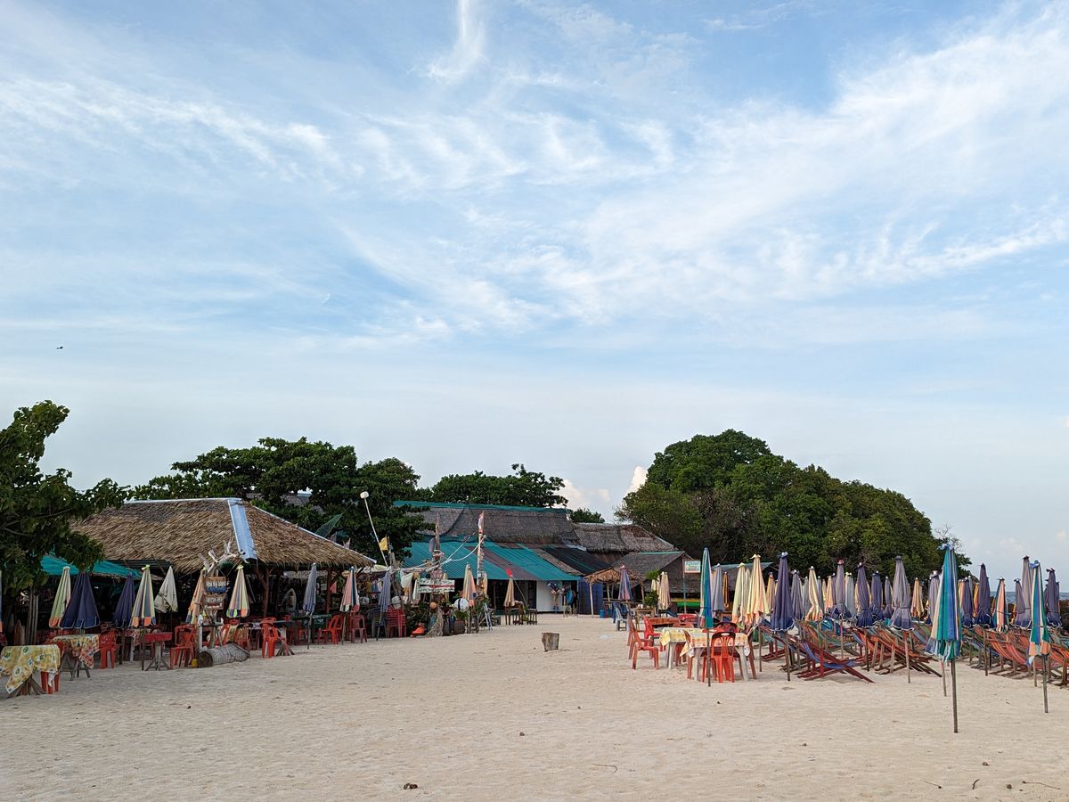 カイ島はパラソルを借りた方がくつろげて良い。波が高めで砂混じりににごってしまい、ここでのシュノーケルはあまり見えなかった。