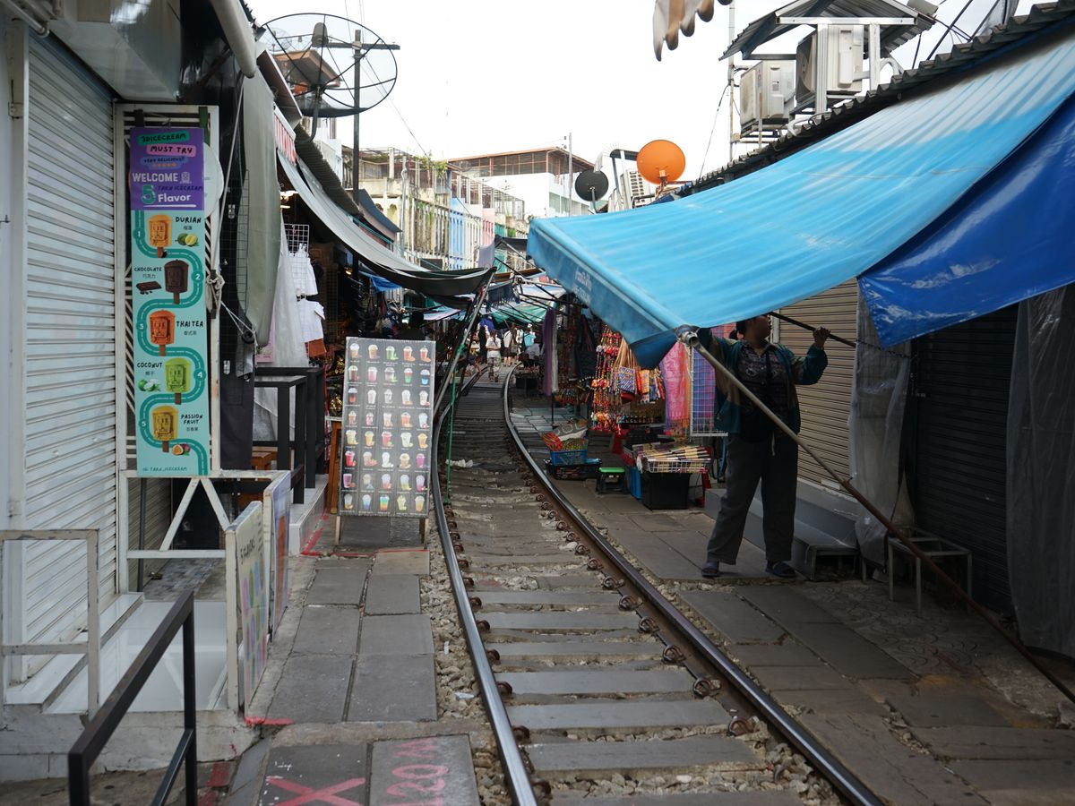 メークロン市場は線路の上を歩くので、慣れた歩きやすい靴がいいです!