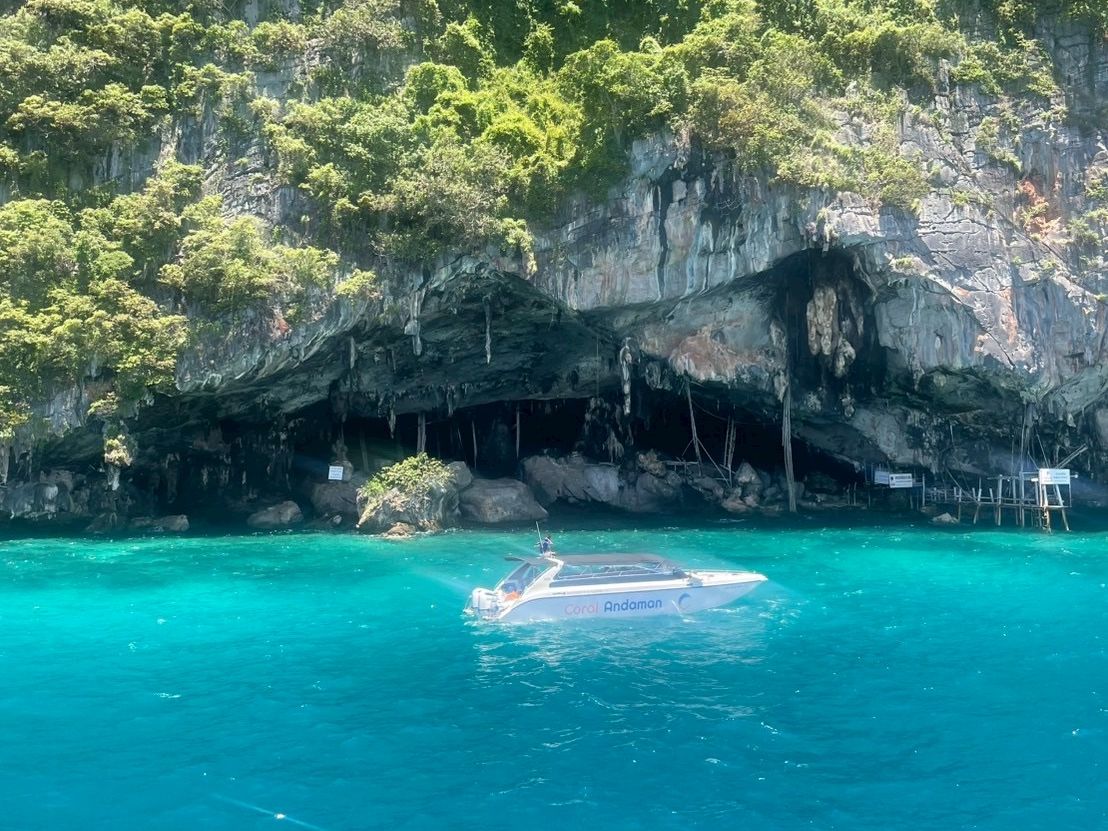 スピードボートでおよそ15分ほどでコーラル島に到着。私は普段から乗り物酔いをしやすいのですが、酔い止めを飲んでいたおかげでまったく問題なく、景色を楽しみながら向かうことができました。飲み物のサービスもありました。到着後は、島で体験できるアクティビティや泳ぐ際の注意点をわかりやすく説明してくださいました。