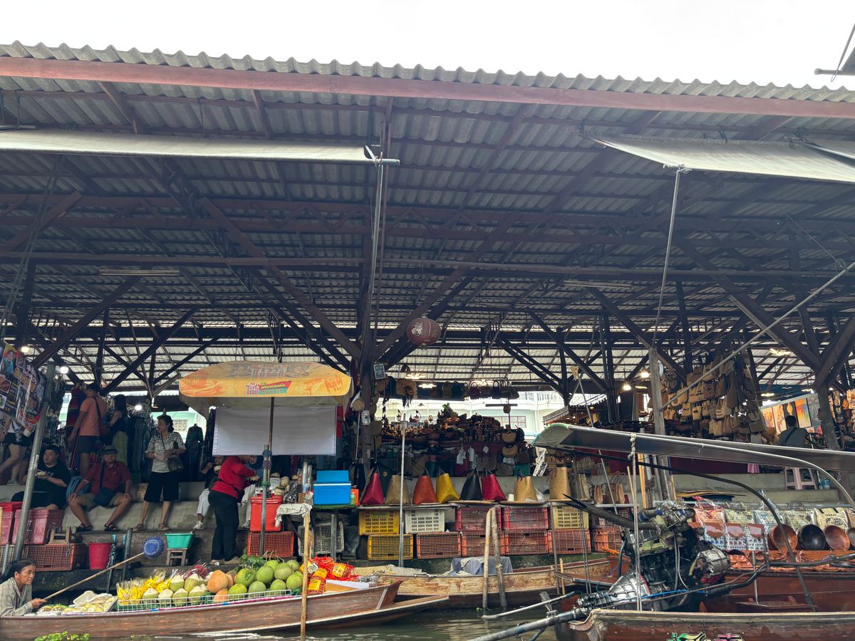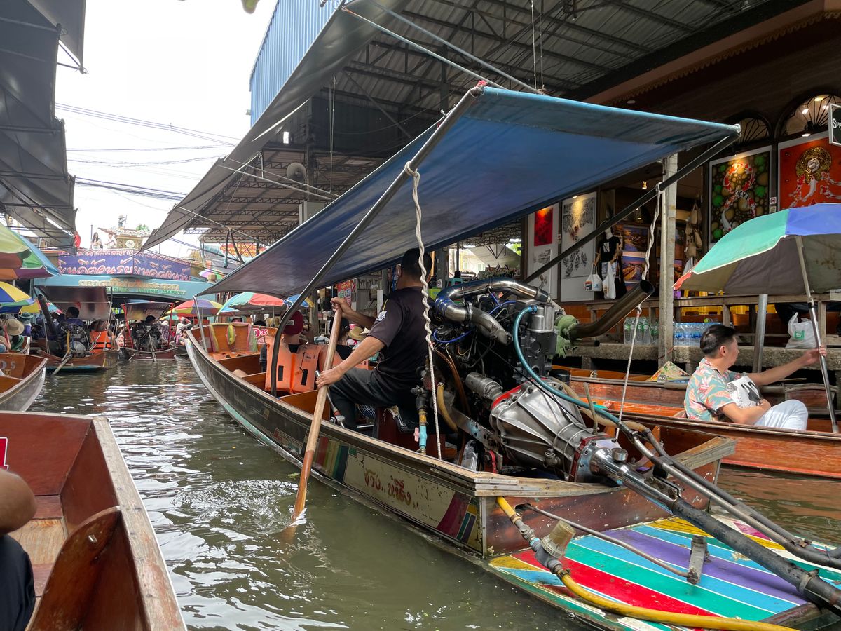 送迎車は道の段差+スピードで激しく揺れる。メークロン市場は大満足。水上マーケットは観光客向けなので追加料金でボートに乗りアトラクションとして楽しむのがおすすめ。半日たっぷり楽しめて良い体験だった。