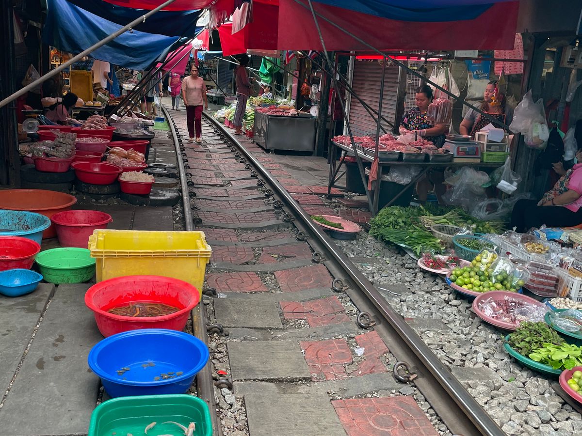 メークロ線路市場で電車が目の前にギリギリまで来て面白かった。