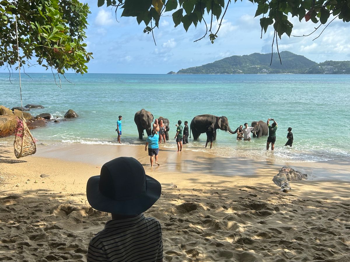 まずエレファントスイムですが、雨季で10時くらいでしたが天気も良く海も綺麗でした。