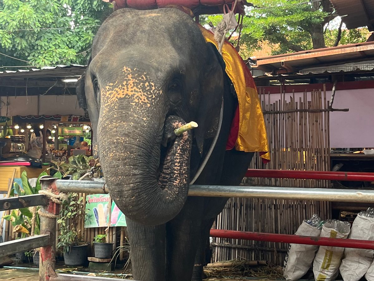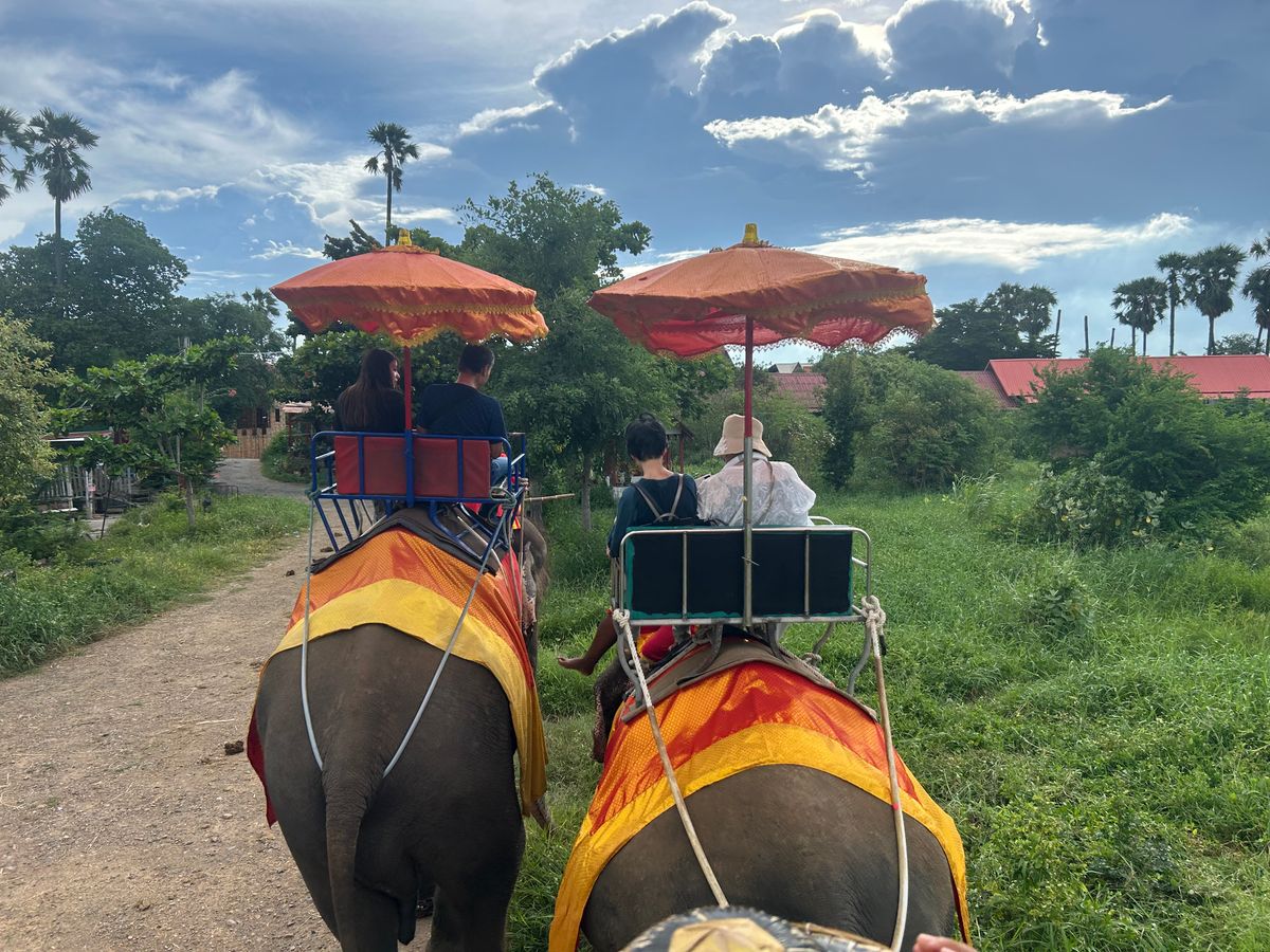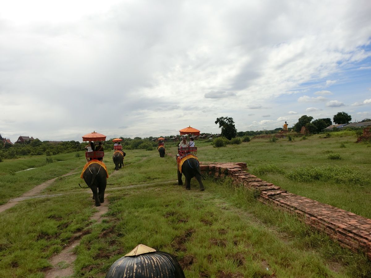 象さんに乗っている時に象使いさんが自分たちの写真(こちらのスマホ等で)を撮ってくれるのですが、象使いさんは象さんに乗ったまま撮影してくれるので肝心な象さんは映りません…普通に友人との2ショット写真になります。