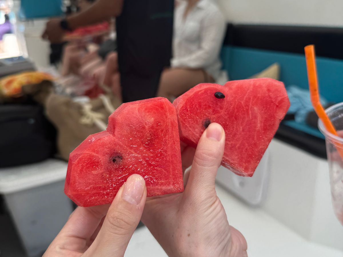 終了後は、温かいお茶とフルーツが提供されますので、それをいただきながらアンケートを書いて終了となります。