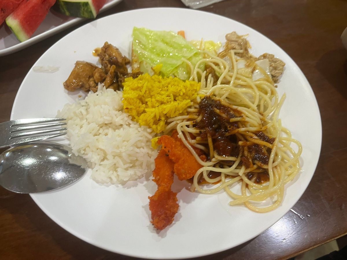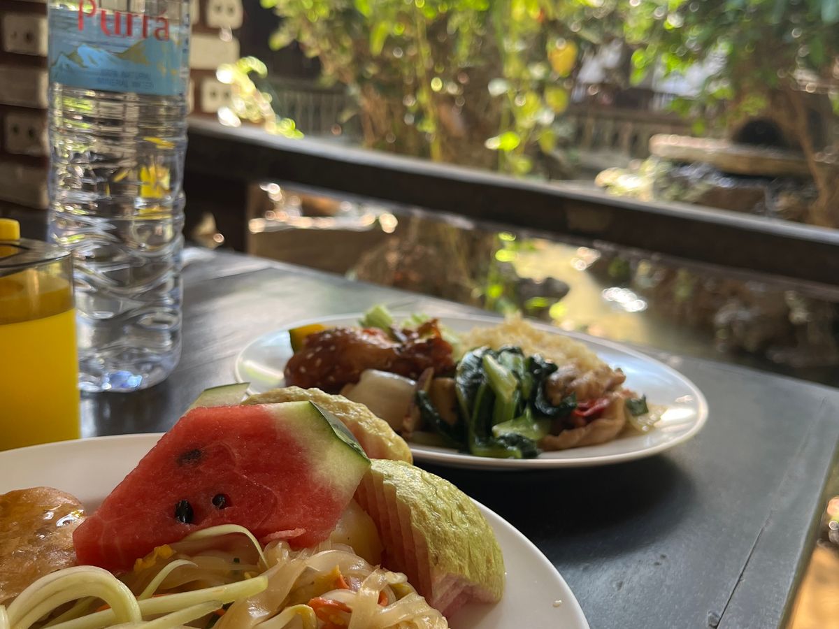 食事はパッタイや空芯菜、フルーツなどたくさん種類がありました。バイキングでしたので好きなものを好きなだけ食べられました。