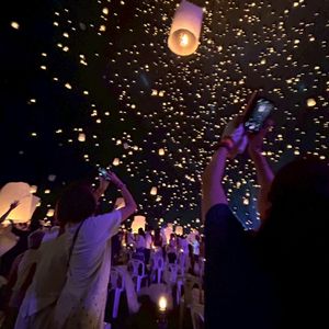 いつかは行きたかった 念願のコムローイ祭りでした。当日は 風もなく 綺麗にコムローイを上げることができて 感激でした🥹