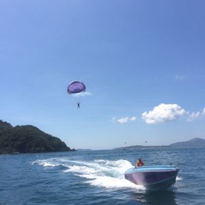 パラセイリングの係りの人はお客さんを物の様に乱暴に扱い、流れ作業でかなり不安でしたが、まあ、楽しかったです。どんどん飛ばさないといけないから大変なんでしょうね。