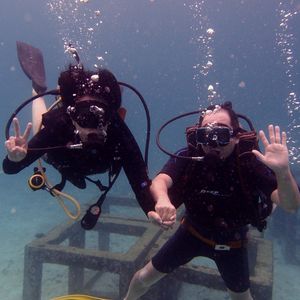 50代の夫婦です。初めての体験ダイビングでしたが、2人にインストラクターが1人ついて頂いたので、いろいろ教えてもらい安心してもぐることが出来ました。