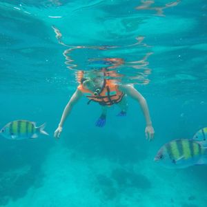 雨季なのにとても良い天気と海で、透明度も高くて、いろんな魚やサンゴ、沈船や銅像などみることができてとても感動しました!
