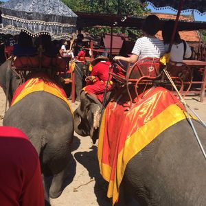 女性の添乗員さんだったので、トイレなども気にかけてくださり話しやすかったです。そのトイレですが、場所により5〜10バーツほど支払うのでコインが必要です。象乗り体験も10分程でしたがとても楽しかったです。でも下りる時に1人20バーツのチップを強要されました(笑)。アユタヤでは自由時間も