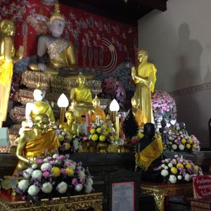 涅槃像のお寺では神仏セット(お花、ろうそく、金箔、御線香)を10バーツで買い、お祈りしましたよ。