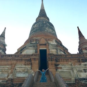 王宮と違ってアユタヤはサンダルや短パンで基本OKですが、足場の悪い道や階段を登るので、スニーカーなど歩きやすい靴を履いていくといいと思います。(忘れても現地でかなり安く買えます)