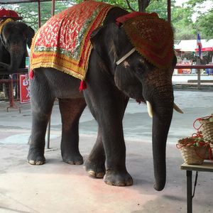 自分たちで行ってみようかと思いましたが、ツアーを選んで正解でした。暑いし、移動も大変。効率よく回ってもらえて、充分満足できました。食事も付けましたが、ブユッフェもおいしかったです。象のりも7分と短いかと思いましたが、7分乗れれば充分でした。前後で象と一緒に写真(40B)も撮れます。かわいい象さんとふれあえて楽しかったです。