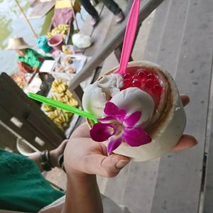 水上マーケットで食べたマンゴーとココナッツアイスがものすごく美味しかった