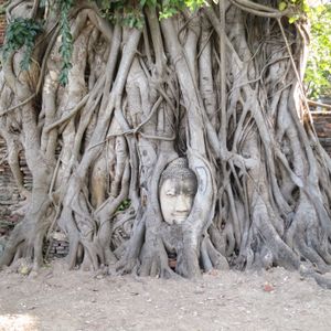 その後のアユタヤ観光では、美しい寺院を見て回りましたが、戦争でビルマ軍によって壊されてしまった遺跡があまりにも多く、アユタヤの歴史を感じました。一番印象的なのはやはり、木の中に埋もれた仏像のワット・マハタート。