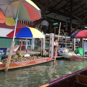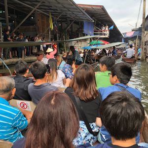 混雑するマーケットでガイドさんがスタスタ歩いて行ってしまい、ツアーに参加していた9名が迷子に。 結果マーケットにいったものの、ほとんど何もできずにエンジン付きのボートに乗せられ終了。アユタヤと逆方向ですし、もはやアユタヤとセットのプランはオススメしません。