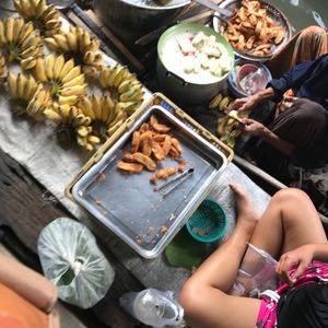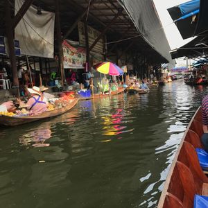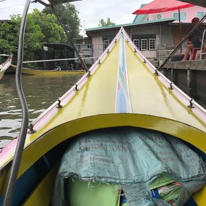 水上マーケットでは、モーターボートで移動するのですがスピードが出てすごく楽しかったです。手漕ぎボートはプラス料金を払って乗りました。マーケットで売っているものはかなり割高でした。