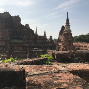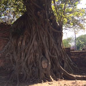 ワット・ヤイ・チャイ・モンコンはたくさんの人がいて,ガイドさんが写真を撮ってくれました。階段を上まで登っていきましたが,レンガが掘れているものが多く登りにくかったです。たくさんの人が登っていることを物語っていました。黄色い布が売っていてそれを仏像にかけると聞きかけている人がいました。信仰心の篤さを感じました。チャオプラヤー(仏像)の足の裏にコインを張り付けている人が多かったです。次にワット・マタハートに行くと聞いたときは,早くいきたいと思いました。なぜなら木の間から仏像の顔が出ているのを早く見たかったからです。毎年,木が大きくなると仏像の顔が下から?㎝上にあがってくると聞きました。ワット・マハタートはぜひ見るべきだと思います。ワット・プラシー・サンベットは3基の仏塔があり15世紀に建てられた物を見て現在まで残っていることに驚きました。最後に像乗り体験をしました。像乗り場で象さん達がずらっと並んでお出迎え!乗るときは怖くないかなと思っていましたが,スタッフの方が親切に手を添えてバランスをとって乗るように教えてくれました。ゆらゆらと歩く像に乗って優雅な気分を味わうことができました。像が水を吸って体にかけていたので,洋服にかかるかなと思いましたがかかりませんでした。王室の乗り物だった像にも乗れて,アユタヤ遺跡を総なめしたこのツアーは十分に心を満たすことができました。ランチ付きで見どころ満載のこのツアーをぜひ体験してみてください。お勧めします。