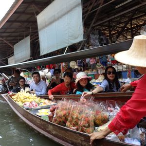 一人旅だったんですが、一人で来ている人もいて楽しくしゃべりながら観光できました。アユタヤはめちゃめちゃ暑かったです。水上マーケットはガイドさんが交渉してくれて、5人で一人100Bで手漕ぎボートに乗れて本当によかったです。食べ放題はいろいろあって美味しかったですよ。大満足のツアーでした。
