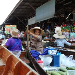 4泊2日の最終日(真夜中発フライト)に参加しました。ココナッツファームはもっと押し売り的なのかな、と思っていた(お土産品は高いみたいです。出来立てのココナッツシュガーは人気すぎて逆に手に入りません)のですがそうでもなくて安心。ダムヌンサドゥアクの水上マーケット、手漕ぎボートも乗りました。完全な観光地なので、押し売り的な店員さんもいたり割高だったりしますが雰囲気を見るためと割り切れば、それもまたご一興という感じでした。エンジンボートが緩急つけて走ってくれるのが一緒に参加した10歳の息子は楽しくてたまらなかったそうです。待ち合わせの駐車場までが(トイレの裏との説明でした)思ったより遠くて、焦りました。