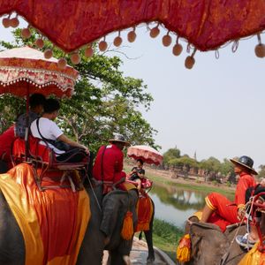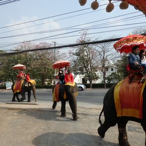 アユタヤでは見学時間は短いものの、迫力ある遺跡を回れ満足しました。ゾウ乗りはガイドさん曰く、「日本人しか乗らない」らしいですが、ゾウのたくさんいる風景と、普通の乗り物にはない乗り心地がよかったです。