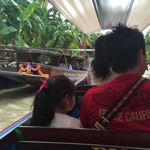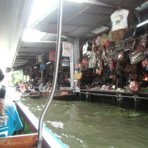 そのあと、お待ちかねの水上マーケットへ。30分ほど船に乗って回りマーケットをみてまわりました。水上では見るだけで何も購入しませんでしたが、最後に買ったカットマンゴーが甘くておいしかったです!