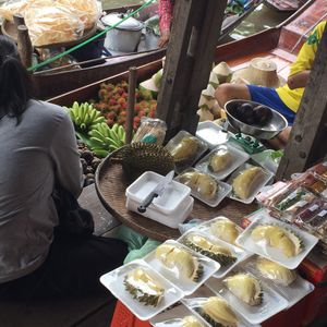 水上マーケットは雰囲気味わうだけでもおすすめです。土産物屋のところで舟の上に山積みされて売っていたマンゴスチンがおいしかったです!朝食がてら食べました。ここでは旬のフルーツが売ってると思うのでぜひ食べてみてください。アユタヤではガイドさんが付きっきりで案内や説明してくれるわけではなく個々での自由散策がほとんどです。全体的に効率よく回れてアユタヤの魅力にうっとり。ゆったりした時間を過ごせました。バスも快適。ガイドさんもお話上手で感じよかったです。ランチも美味しい。初めての方にはおすすめしたいツアーです。あと、結構汗だくになるので汗ふきシート持参されるといいと思います。1日長いツアーで途中で疲れるかなと思いましたが意外に大丈夫でした。