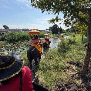 食べ終わってから アユタヤのゾウ乗りの場所へ移動して ゾウ乗り体験しました。ここではゾウ乗りでお金がかかります。時間が長い方のが1人500バーツかかりますが、オススメです!象に乗りアユタヤの遺跡を見ながら池の中へ入ってくのが興奮です!終わってから象さんへ1人20バーツお礼で渡し、その後に1人200バーツで、象に鼻で持ち上げてもらう体験をして、息子が喜んでました!ガイドさんがアユタヤ名物のロティサイマイを買ってくれ食べ美味しかったです。