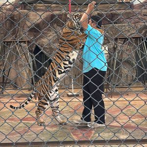 それから猛獣と写真を撮るのが希望だったので、ホワイトタイガーと写真を撮る気でしたが、トラと散歩するというものがあり、1人1000バーツ(¥5000くらい)で これにしました!トラと散歩の写真では、トラ以外にライオンとも写真が撮れて 1人ずつの写真と2人のツーショットの写真も撮ってもらえます!あちらのスタッフが一眼レフでも撮ってくれて帰りにQRコードで写真を夜に取り込んで見れます。沢山の写真を撮ってくれてました★お土産に 大きな写真立てに写真を入れてもらえます!(1人1個)