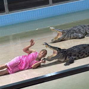 到着は動物園開園前の8:15。園内はとても清潔で独特の匂いもほとんどなく、動物好きの私たちは一日中いたくなるほど。ワニ・象・オラウータン・ライオンのショーを効率よく案内してくれ、餌やり体験や虎・ライガーとの記念撮影も楽しめました。