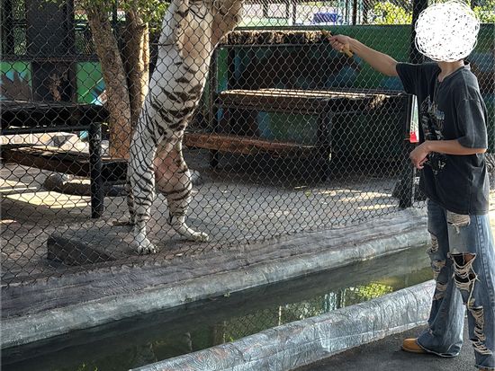 その後に写真にはありませんが巨大なピラルク釣り(餌やり)をして、猿やシマウマや鳥などを見ながら 猛獣ゾーンへ!網だけの凄い近い距離で動き回るライオンやらホワイトタイガー、ホワイトライオン、ヒョウ、トラ、ハイエナを見ました。肉の餌をあげれます!ここでも一回50バーツで肉が2個もらえるので、こんなに安く餌をあげれるなんて!と何度も餌をあげました!