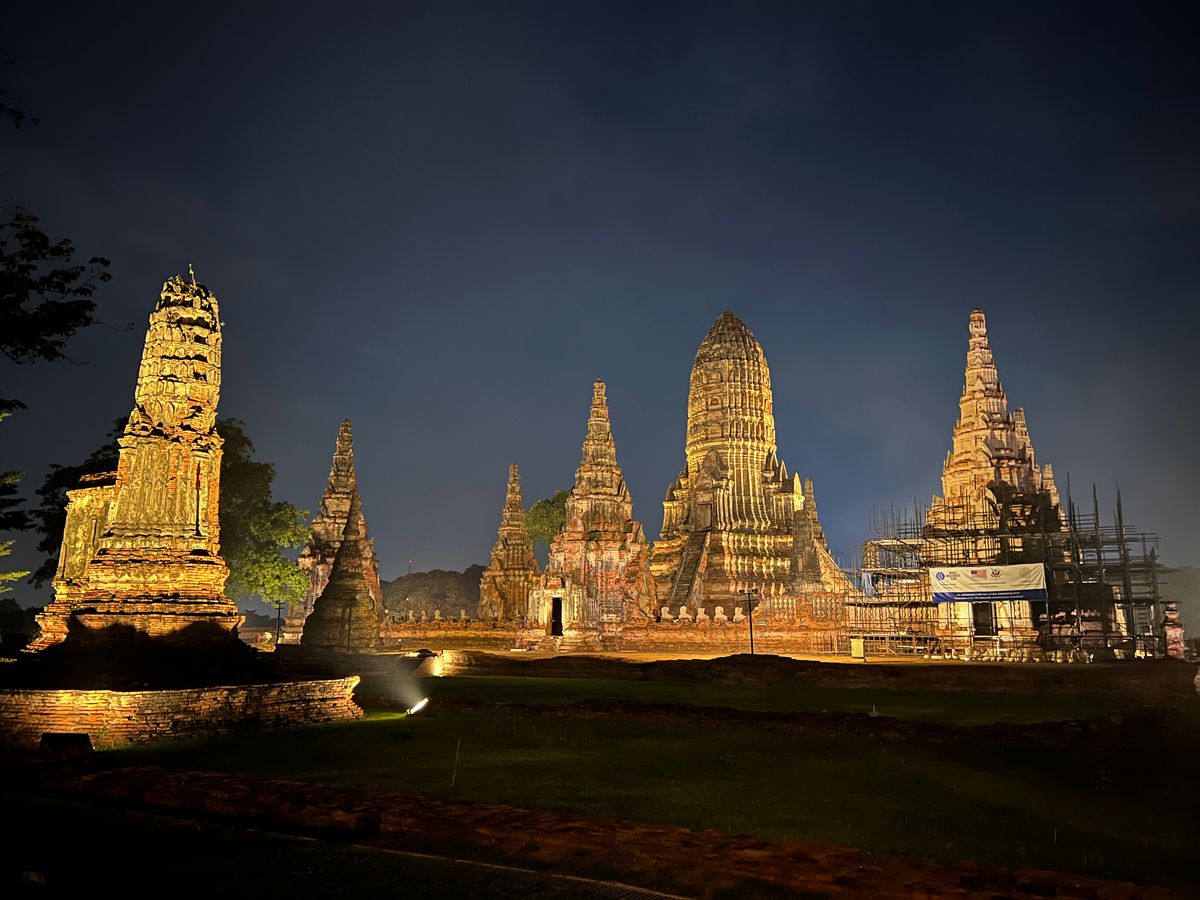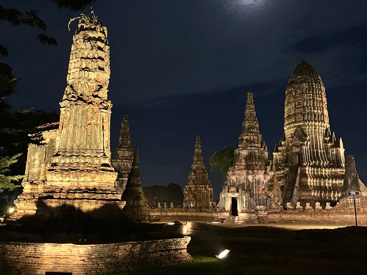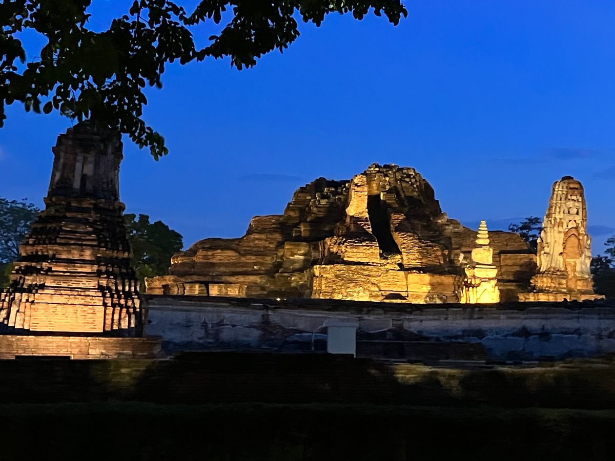 ライトアップされたアユタヤのお寺、昼間の景色とは、また、違い、とてもよかったです。