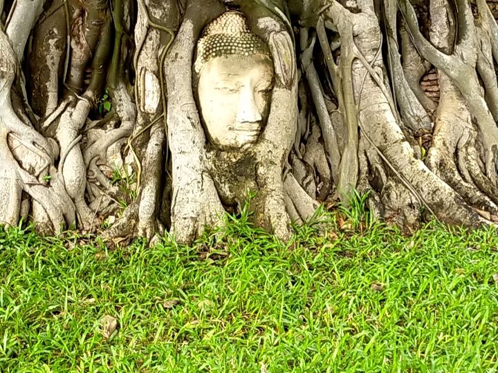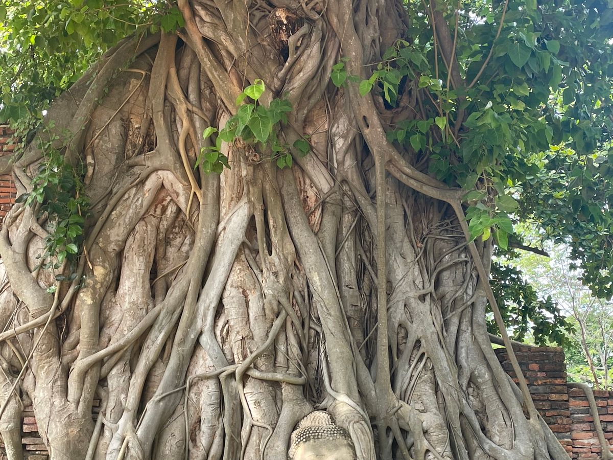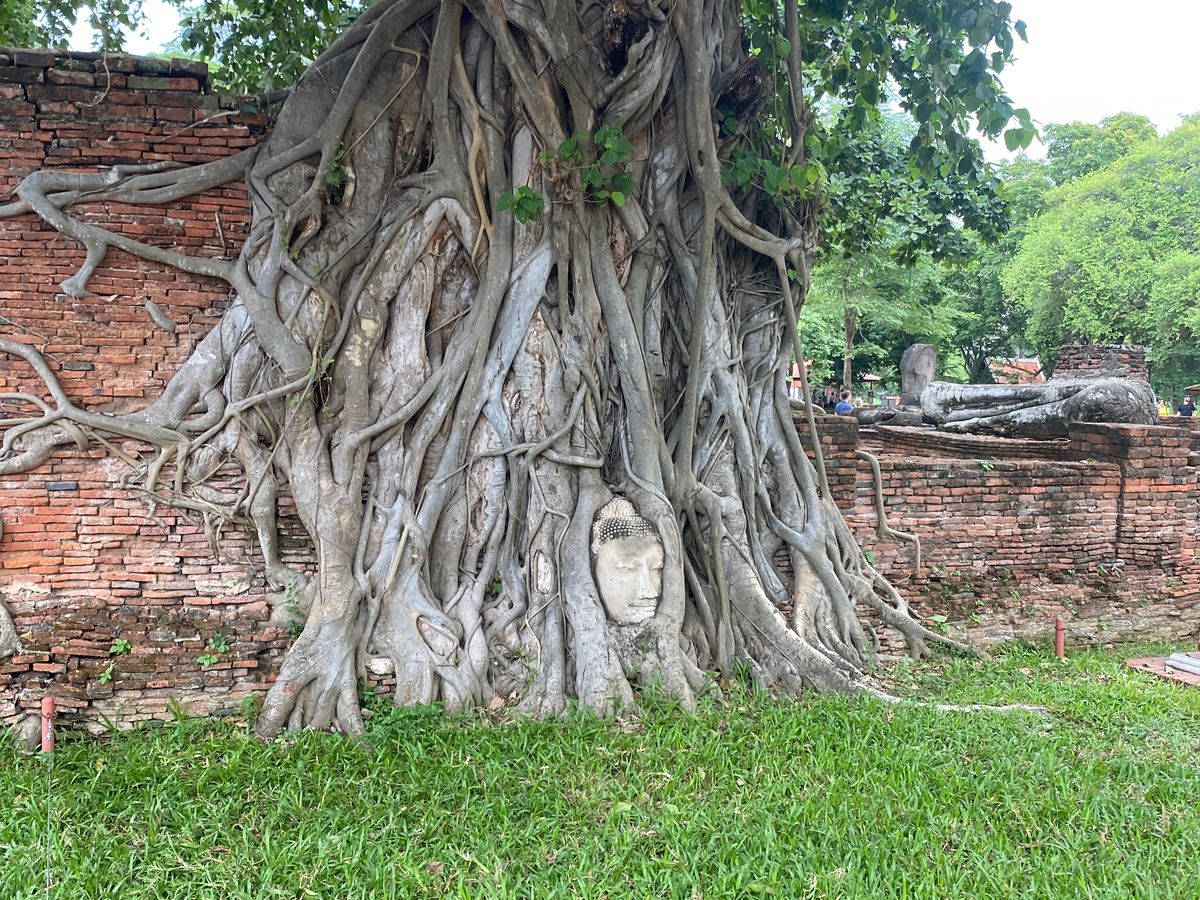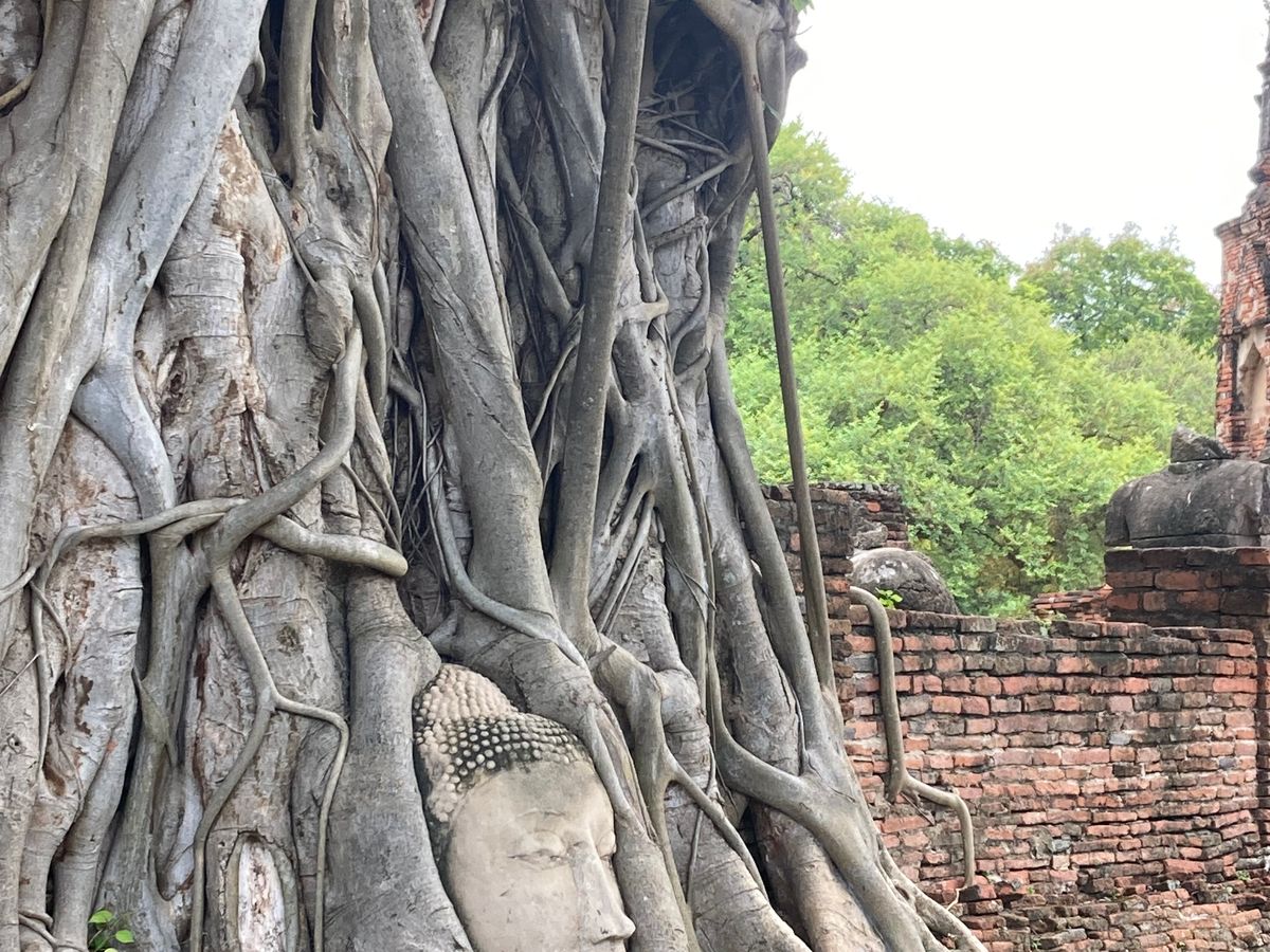 アユタヤ駅に移動後はアユタヤ名物トゥクトゥク乗車し、あまり見学者が来ない寺院にも(ブラックピンクのリサが菩提樹の根っこに座ってポーズを撮るのを真似しました(笑))