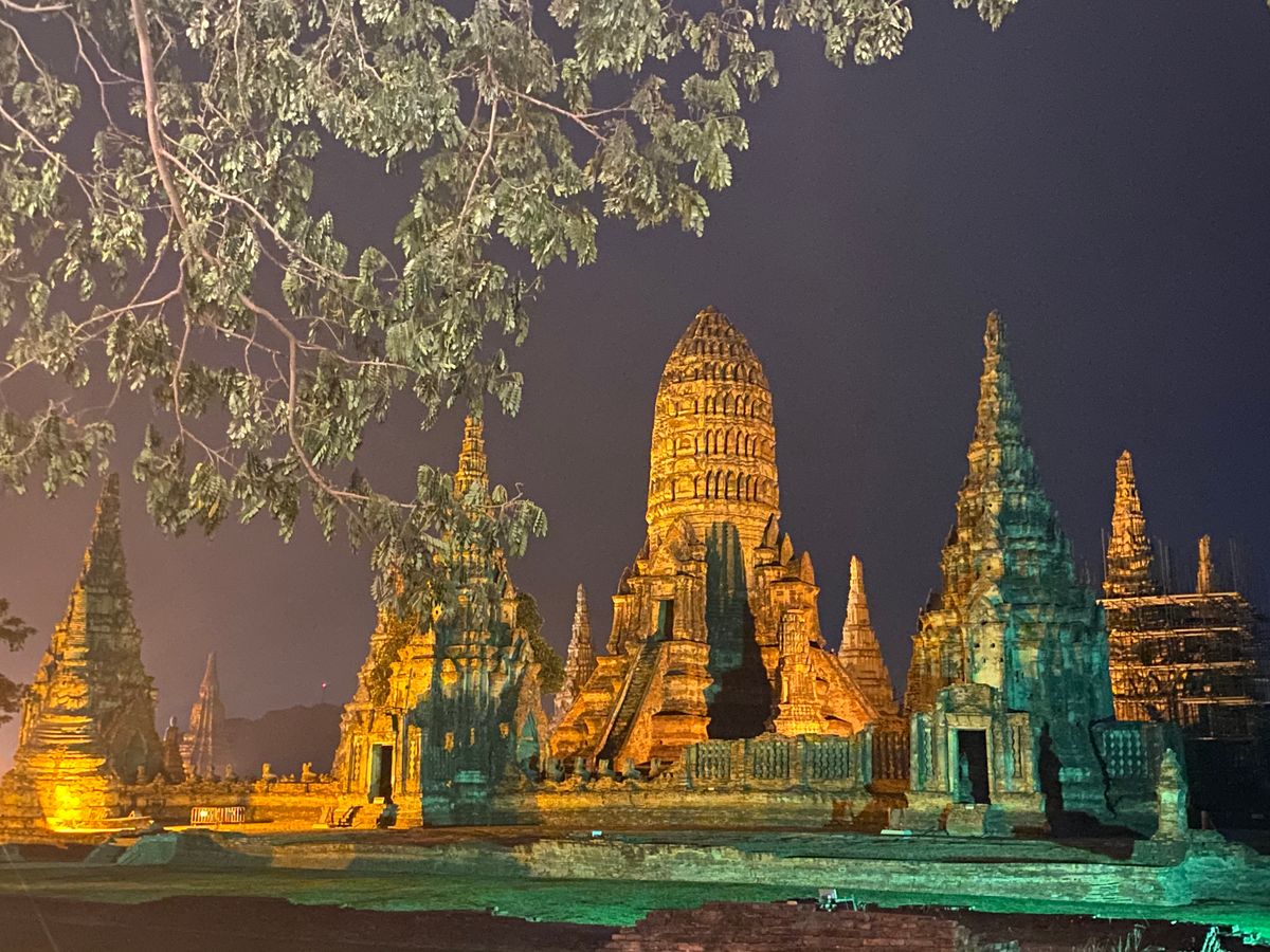 アユタヤ世界遺産祭りを観た感動から25年振りの再訪。遺跡の崩壊が目立ち、ライトアップもワットヤイチャイモンコンの1箇所のみでしたが四半世紀の時の流れを感じることができました。手長海老は少し期待外れでした。