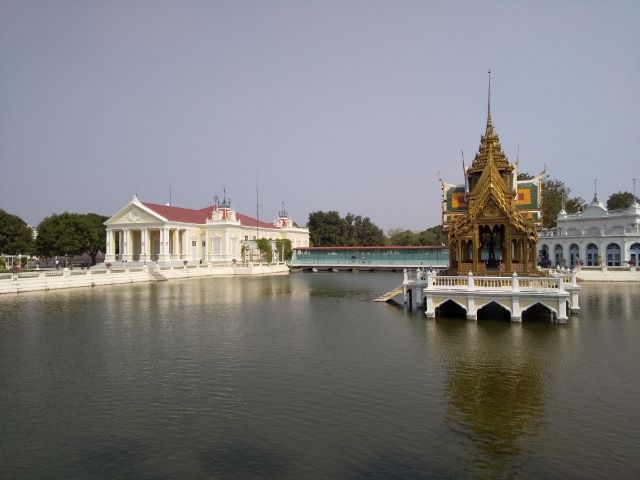 ピックアップ時間が当初6時50分ホテルロビーとなっていましたが、前日に催行会社から7時30分に変更する旨のメッセージが入っていて、朝少しゆっくり出来ました。ツアー参加者は私達夫婦2名だけだったのが、出発時間が遅くなった理由だと思います。ガイドさんと運転手さんの4名でまわりました。バーンパイン宮殿は最後にまわして、先にアユタヤ市内の寺院巡りでしたが、各寺院を早めに回れたので、比較的すいている状態で観光できました。時間に余裕が出来ていたので、バーンパイン宮殿は時間を掛けてまわりました。宮殿にはいくつもの建造物があるのですが、建物の中には入れず、宮殿の広い庭園内を歩いて見て回るだけの物でした。復路はチャオプラヤ側クルーズです。乗船場は、アユタヤから、かなりバンコク方面へ南下し、ノンタブリー橋の南側東岸のグランド・パール・ピアから乗船しました。食事はビュッフェ型式の食事で、お料理は想像していたとおり、可も無く不可も無くでした。1時半に出港し4時前にはバンコクのリバーシティに到着しました。私達は、リバーシティの隣のホテルだったので、ガイドさんと別れて歩いて帰りました。終日ツアーですが、歩くのは午前中だけなので、疲れることはまったくありませんでした。