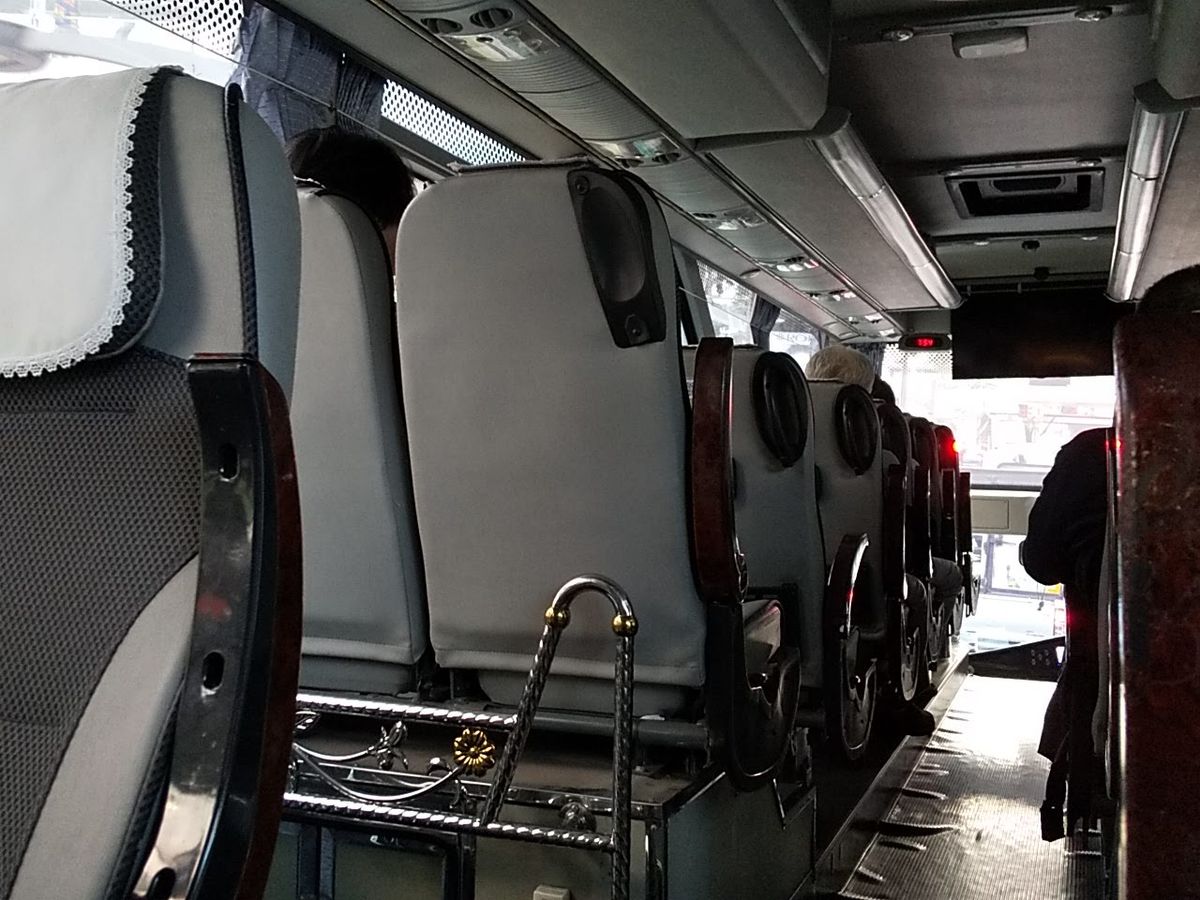 参加者は20名程度でしたが大きなバスで思った以上に広く、かつ涼しいのでゆったり旅をすることが出来ました。帰りの道中では冷たいミネラルウォーターやおしぼりを配ってくれるので、とてもありがたいです。