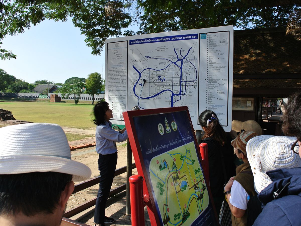 ガイドさんは歴史に詳しい方でアユタヤの歴史について行きの車中から説明してくれて、遺跡を見るとき大変参考になりました。全員で4人しかいなかったのでプライベートツアーのように私たちのペースに合わせて説明してくださいました。写真を撮るのにいい場所も教えて下さったので、記念写真がたくさん撮れました。ドライバーさんと連絡を取って、私たちが遺跡を見学し終わるちょうどの時間に配車してくれて、すぐに車に乗り、次の目的地に向かうことができました。とても暑かったのですぐにエアコンのよく効いた車内に入れて助かりました。