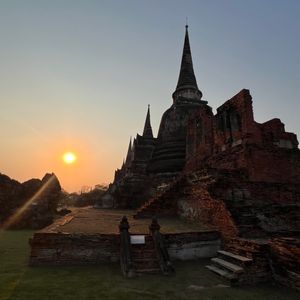 アユタヤは晴れ、日中は遺跡群がすごく綺麗に見えました。その反面夕方から夜は浮かび上がって見え幻想的な景色でした。