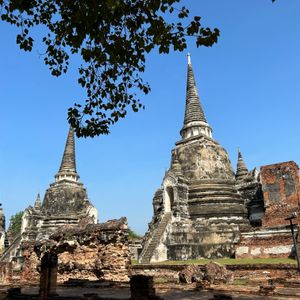 午前のツアーを選んだため6時45分にホテル集合。日本語がとても上手なガイドの方で、楽しく解説を聞きながら回ることができました。1時間ほどでワット・ロカヤスタの寝釈迦仏像、ワット・プラ・マハタートの仏頭、そしてワット・プラシーサンペットを訪れました。途中お手洗いには小銭が必要なので要注意です⚠️