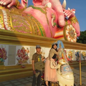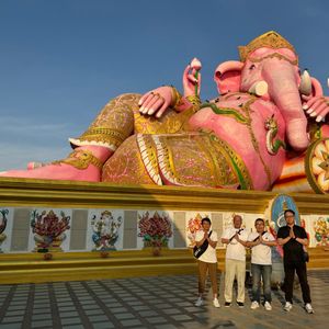 とても楽しみにしていたツアー。ホテルまでお迎えにきてくれたのでありがたかったです。当日は元日ということもあってか渋滞しており、急ぎ足での観光になり、念願のピンクガネーシャもじっくり見物!!とはいかず、さらーっと見る感じで、写真を撮っていたらガイドさんがどんどん先を行ってしまうこともしばしば、、。半日というスケジュールの中で焦っておられるのかなという印象でした。そんな中でも説明はしっかりしてくださっていたのでわかりやすく、勉強にもなりました。最後はホテルまで送り届けていただく予定でしたが、おすすめのショッピングモールを教えてくださり、そこで下ろしてもらいました。自分たちでは回りきれないところが効率よく回れるのがツアー。選んで本当によかったです。ありがとうございました。
