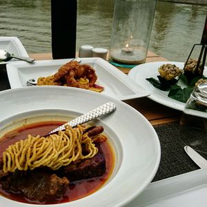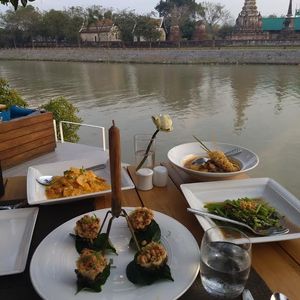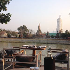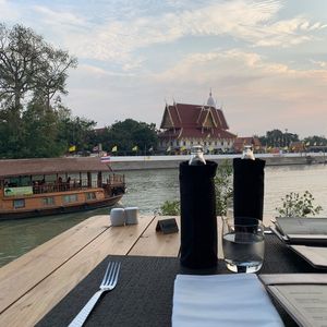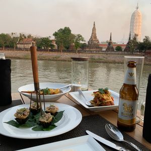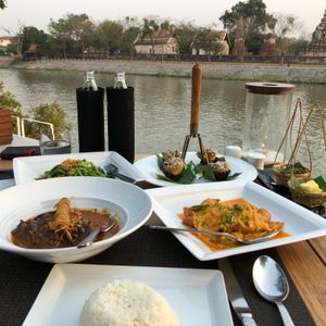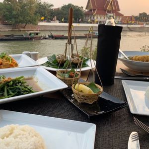 一番の満足は、夕食会場の「Sala Ayuthaya」、5時半頃に到着し川沿いの屋外席まで案内、対岸の遺跡を見ながら落ち着いた雰囲気の中で食事がスタート、その時間はまだ明るく、食事が進むにつれての、夕景また夕闇への変化が最高に素敵でした。かなり有名のお店らしく予約が取りづらいらしいのですが、一番いいと思われる場所の席で、最高の時間帯の予約でした。当然料理にも満足、時間の変化による景色への感動、写真で伝われば幸いです。(^_^)景色も雰囲気も天気に左右されるのかもしれません。でも、雨でもかなりいい雰囲気じゃないかと思います。