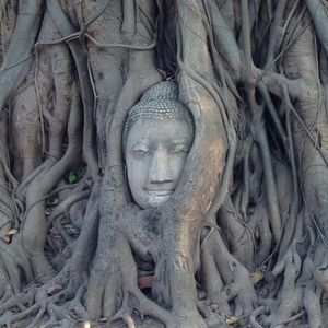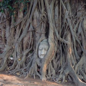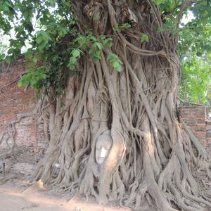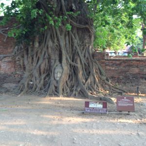 そして有名なワット・マハタートの、木の根に首だけが残された仏像を生で見ることができ、感激でした。その他にも首のない仏像がたくさんあって、不気味な雰囲気の中に、過去の歴史の重みを感じ、見れば見るほど引き込まれてしまいました。