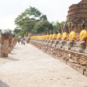 西洋や中国風の美しい建物が並ぶ離宮や高さ70メートル以上の仏塔、戦争に負けて破壊されつくした遺跡、そして雰囲気がとてもあり、アユタヤを代表する遺跡の王室守護寺院など、テンポよく回ってもらえます(途中、象乗り体験も)。