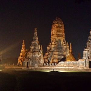 今回世界遺産アユタヤ幻想のナイト観光に参加して、非常に満足できる観光をすることができました。第一に、バスで移動して感じたことですがアユタヤはバンコク市内から車で一時間程度とかなり離れており、個人旅行で行くには少し不便な場所ですが、ツアーで行くことにより、ホテルでバスに乗った後は時間や乗り換え、目的地の注文など様々な面倒事を一切することなく安心して目的地に着くことができた点です。加えて、遺跡はそれぞれに距離があるので、タクシーなど手配する場合ドライバーに観光中待ってもらうか再度タクシーを捕まえる必要があり、手間である他、金銭的にも高くついてしまいますが、このツアーではバスで移動させてくれるのでそういった手間や心配もありません。第二に、アユタヤの遺跡に着いた後、どこを見るべきか、など見どころをアユタヤの歴史を絡めて詳しく説明してくれたので初めてでもいろいろなものを学ぶことが出来ました。特に、アユタヤなど遺跡は通常昼に行くことが多い場所ですが、このツアーでは昼に一度観光した上で、夜にもう一度観光できるのでアユタヤ遺跡の違った顔を見ることができます。また、その景観は様々な色にライトアップされ非常に美しいものでした。アユタヤの美しい景観を楽しむ一助となるツアーだったと旅行後に確信しています!