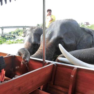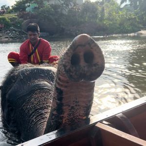 象のエサやり体験ではボートの真横まで象が近づき、船の中まで鼻を伸ばしてくるので、間近で触れ皮膚の感触までわかり貴重な体験になりました。写真も迫力があるものが撮れて大満足!!ボートでの移動も夕方で風がとても気持ち良かったです。車内も少人数でバンコクからの長時間移動も問題なく快適に過ごせました。このツアーに申し込んで正解でした。