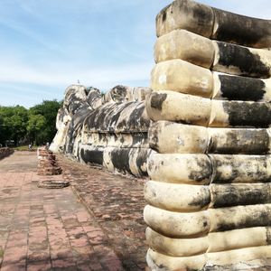 アユタヤは晴れ、日中は遺跡群がすごく綺麗に見えました。その反面夕方から夜は浮かび上がって見え幻想的な景色でした。